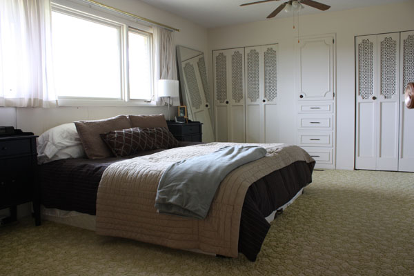 I mentioned yesterday that the kitchen project is my top priority upstairs (because we use it so heavily, and because I can't stand the carpet), but this project would be a close second—the master bedroom.