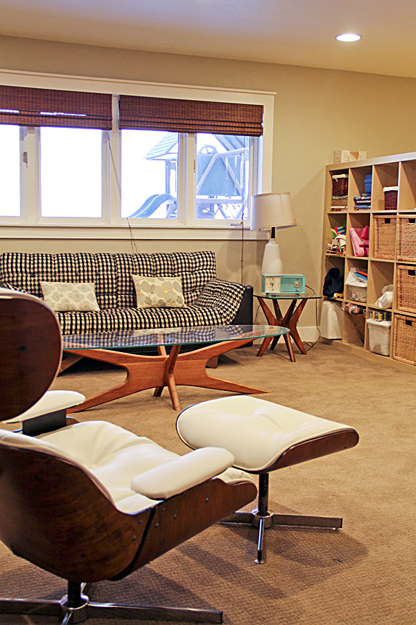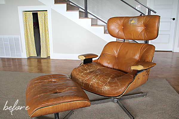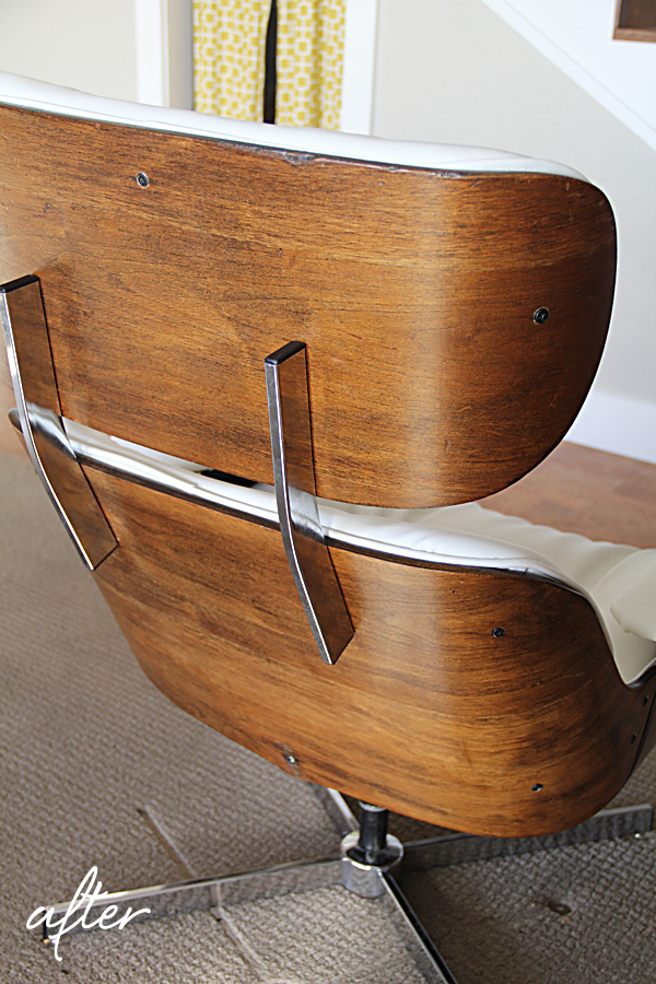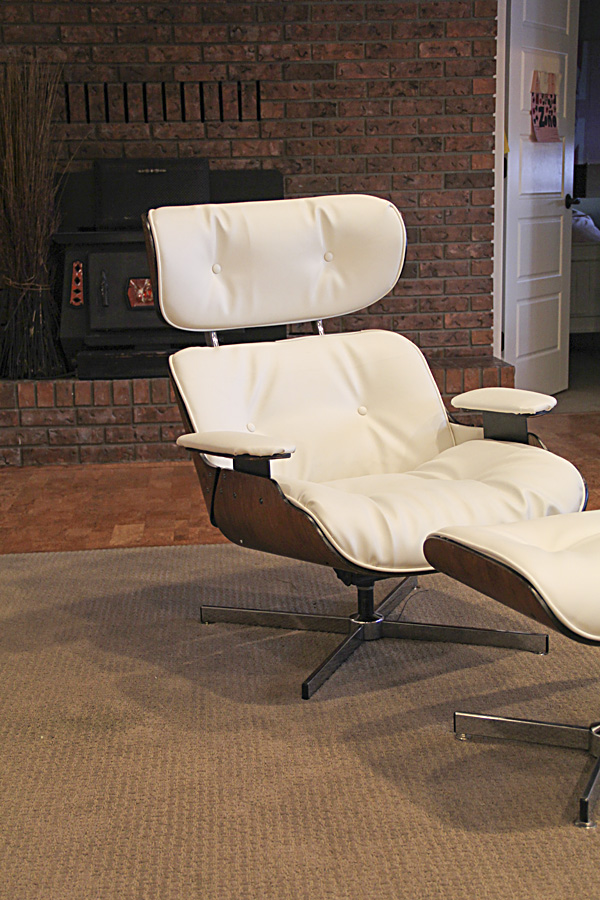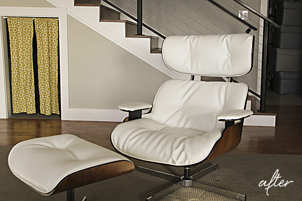 Now that it is done, I've heard a few say "This was always my favorite chair" or "I forgot how comfortable this chair was!" (Rumor has it the knock-offs are actually more comfortable than the real ones. This one reclines—the originals only swivel.) As such, I sort of want to move it upstairs to a place we can enjoy it often. For now, it resides downstairs.