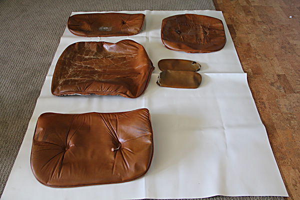The pieces laid out in the garage for re-finishing: