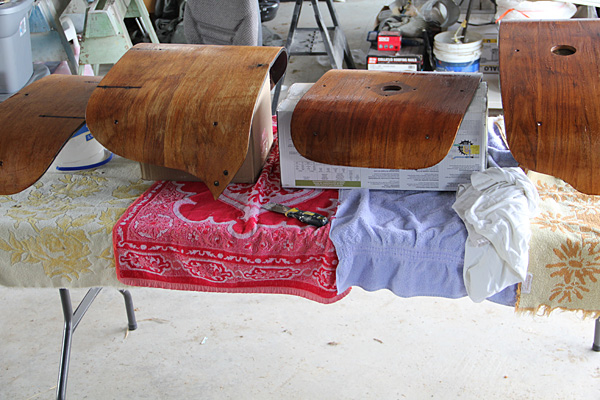 Taking it apart (Each piece was built with an inner and outer bent plywood shell):