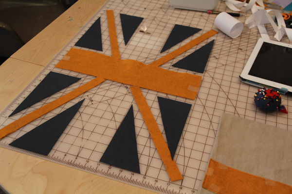 To make it, I first made a template with paper and then used those pieces as a pattern to cut the felt. The gray pieces were all the same size. It definitely took some time and careful measuring to do this part of the project correctly.
