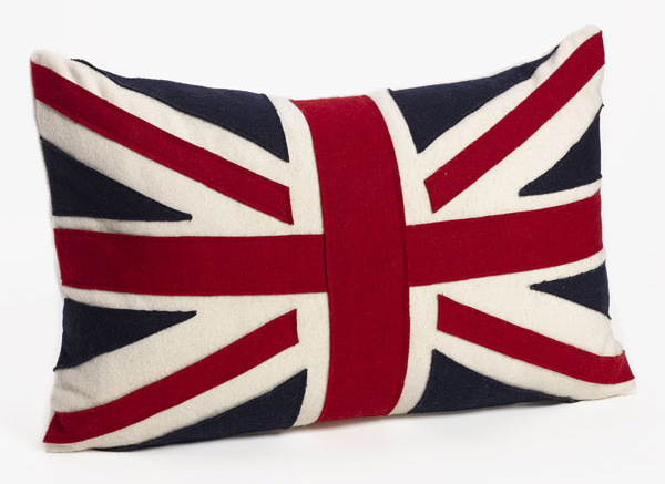 You might remember this isn't my first project with the British flag. I can't explain my attraction. It's less the iconography and more the geometric graphic punch. And trend, I confess. You see it everywhere. When searching for a pillow to guide me in my project, I found this one: