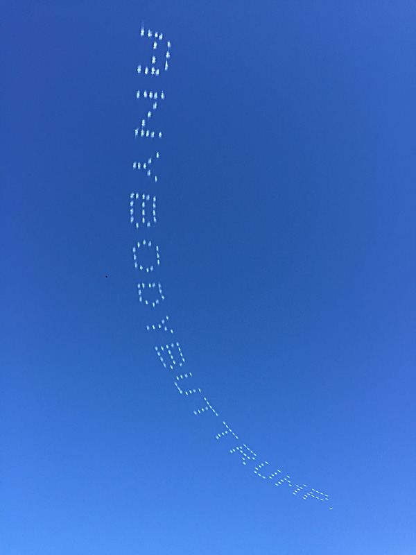 As a side note, we won't forget the appearance of sky writers that flew above us halfway through the parade. It was rather distracting to the point of annoyance, but I must say it was a pretty brilliant piece of marketing.