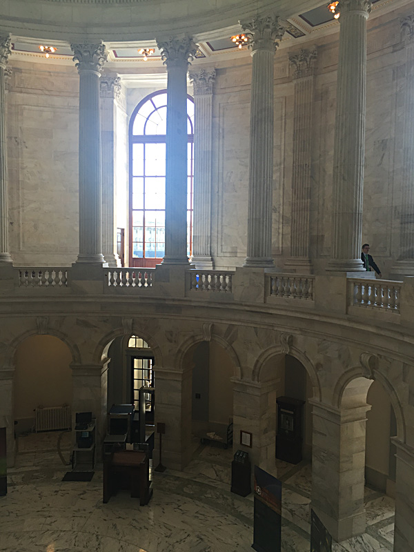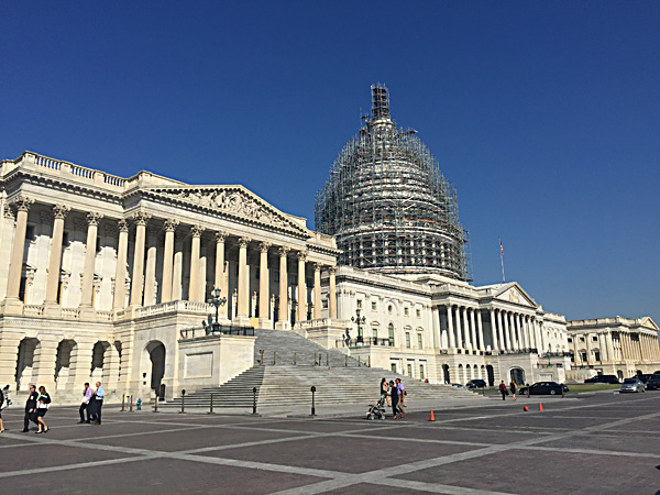 That night back in our hotel we were watching TV and caught a speech Trump was making to a group of college students. He happened to be mentioning this particular Capitol project. He said "If I were in charge of this project, I would just say 'work faster!' But since I'm not in charge, this is the first money I will save our country if you elect me President. We can have the Inauguration with the scaffolding in place!"  Ha ha.