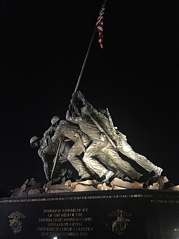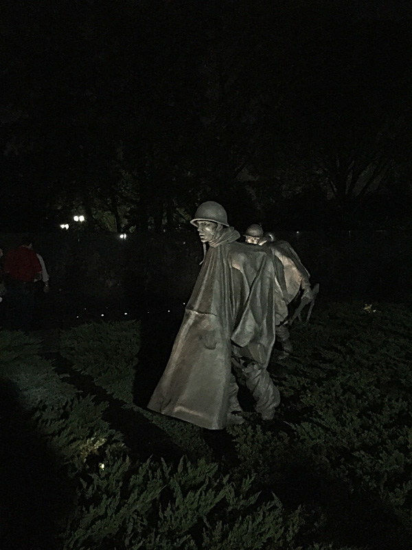 That night we were treated to a nighttime tour of many of the monuments and war memorials. They were almost more impactful at night, especially the Korean War Memorial (the last photo).