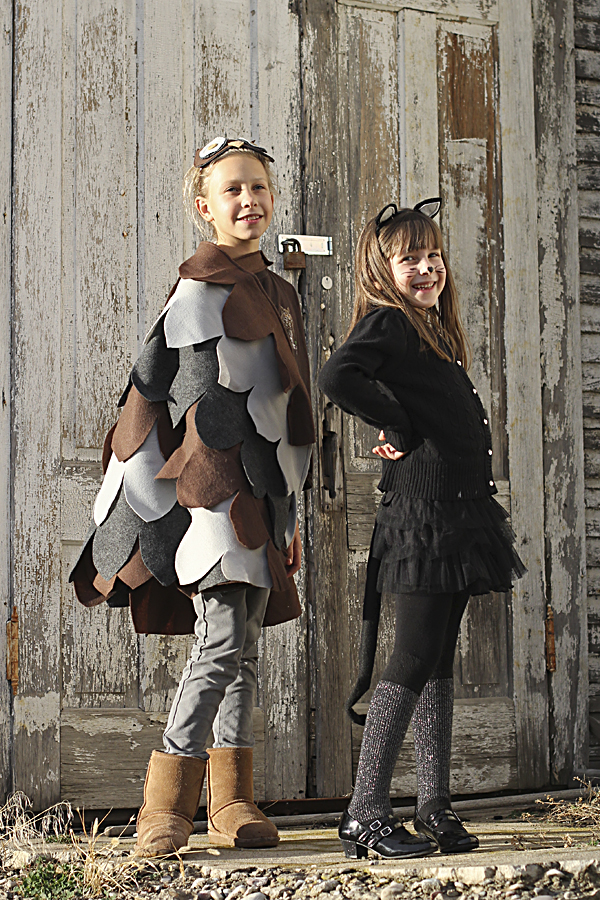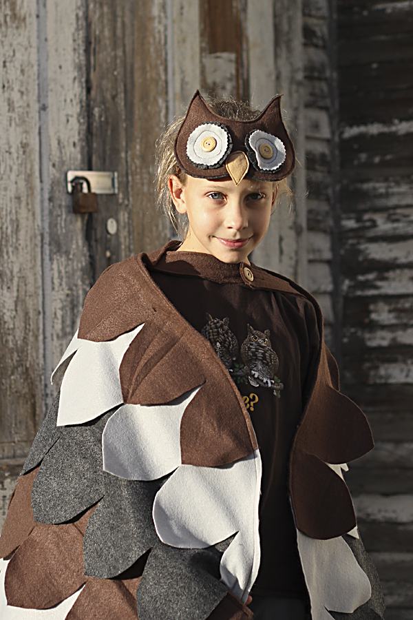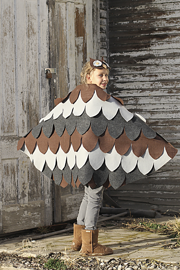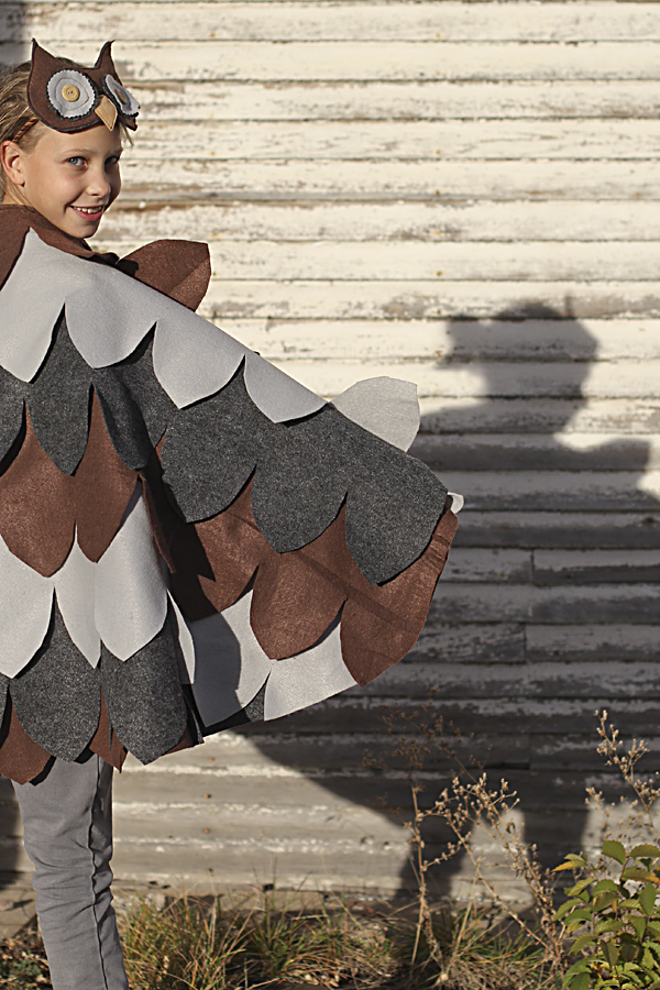 Sarah asked to be an owl this year. After a quick look around I didn't find anything cute/cheap enough, so I decided to make it out of felt. I consulted Pinterest for a few ideas and then made up my own design. The great thing about felt—no hemming required. Quick and easy!