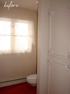 - eliminate the front entrance to the bedroom and add a powder room in this spot. (We later nixed this plan. I decided I didn't really need another bathroom to clean).